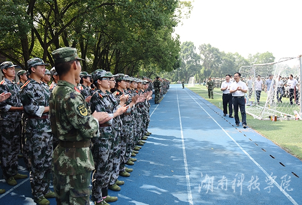 陈弘还特别关心了在场外因身体不适无法参训的同学。现阶段天气较炎热,陈弘叮嘱大家要注意防暑降温,军训间隙多补充水分。一定要在保证自己身体的前提下,顺利完成军训任务。