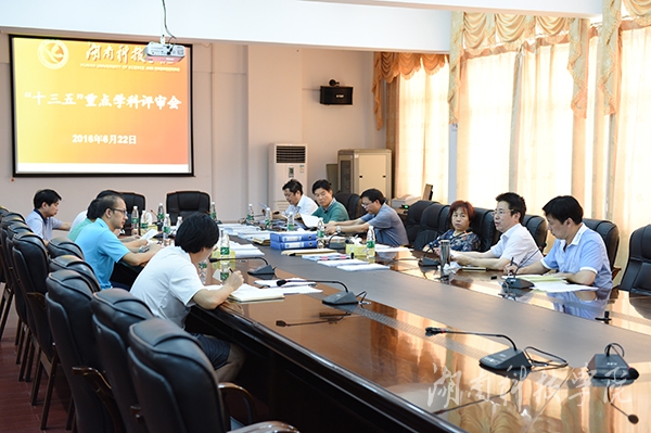 本网讯6月22日下午,学校“十三五”重点(建设)学科评审会在行政办公楼六楼会议室举行。校长曾宝成,副校长宋宏福、李常健及校学术委员会成员参加。