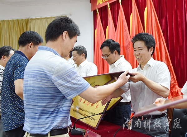 与会校领导为受表彰先进集体和个人颁奖。