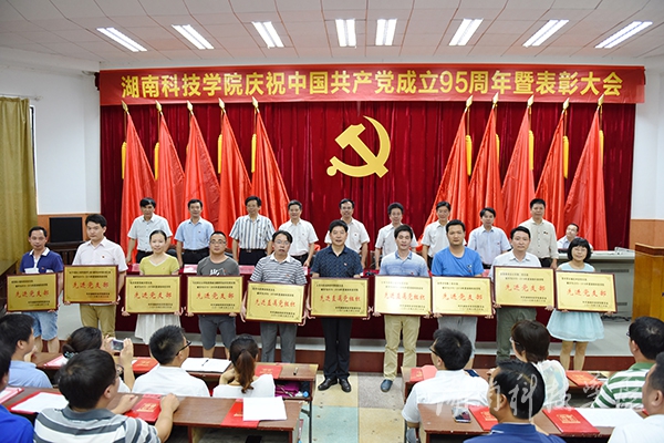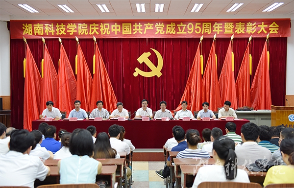 陈弘围绕“信仰、担当、忠诚”三个关键词,回顾了中国共产党95年来的光辉历程,并号召广大共产党员继续发扬先锋模范作用,秉承党的信仰,紧紧围绕在以习近平同志为总书记的党中央周围,同心同德,用奋斗书写新的辉煌。他指出,对于科院人而言,信仰是坚定对共产主义、对学校转型发展的信心;担当是把学校“十三五”规划和党代会提出的目标记在心上、落实在行动中,严守党规,把本职工作做好;忠诚是爱校荣校、敬业爱岗,时刻牢记自己是8800万党员的一分子,是湘科院的一分子,主动思考、积极解决面临的问题,以更加务实的作风、振奋的精神、强烈的使命感和责任感,开拓创新,共同为学校的发展做实事。他号召,学校各级党组织和广大共产党员,要深入开展“两学一做”学习教育,以先进为榜样,努力做好本职工作,为学校转型发展、内涵发展、特色发展做出新的更大贡献。