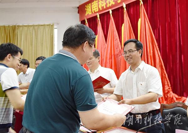 唐艳明通报了省委教育工委对全省教育系统优秀党务工作者、优秀共产党员和先进基层党组织的决定,我校党委书记陈弘同志被评为“全省教育系统优秀党务工作者”、化学与生物工程学院院长何福林同志被评为“全省教育系统优秀共产党员”、土木与环境工程学院党总支被评为“全省教育系统先进基层党组织”;宣读了学校党委《关于表彰2015—2016年度优秀共产党员、优秀党务工作者、先进基层党组织的决定》,授予陈玉皎等80位同志“优秀共产党员”称号,授予胡清华等16位同志“优秀党务工作者”称号,授予土木与环境工程学院党总支等3个直属党组织和机关党委党政办党支部等7个党支部“先进基层党组织”称号。