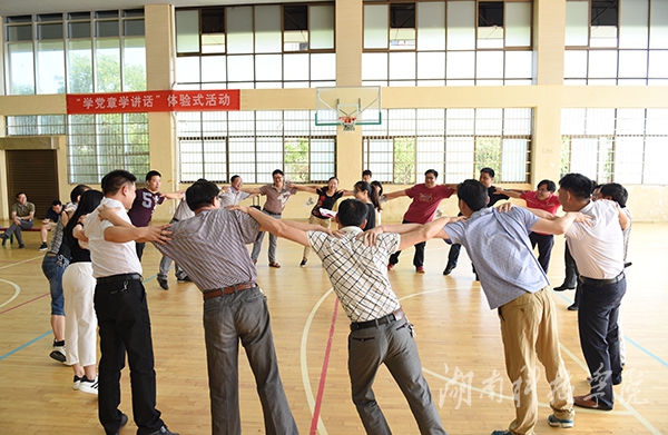 体验式学习活动以“风吹草动,花开花落”、“誓词接龙”两个热身活动拉开序幕。活动正式开始前,全体处干班学员被随机分成两个队,分别选出队长,确定队名,即“团结队”和“奋斗队”。在随后进行的“快速选择”、“众里寻他”、“集体智慧”、“自我反省”四个环节中,处干班学员们团结协作、配合默契,在比拼中展现出各自对党章以及习近平总书记系列重要讲话的深刻理解,同时对照党章查找自身存在的不足,深入分析原因,明确今后努力的方向。