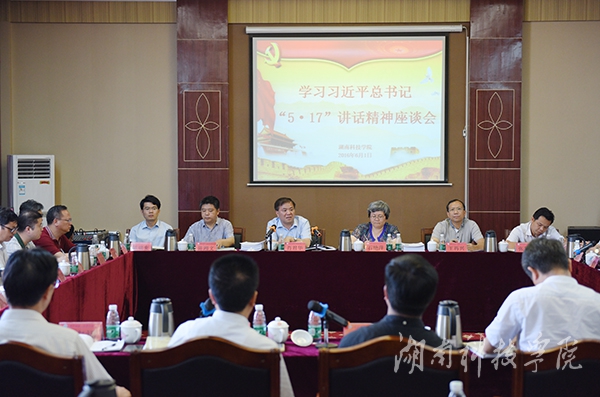 肖君华指出,习近平总书记的“5.17”讲话是我国新时期哲学社会科学繁荣发展的指南针,深刻回答了“什么是中国特色的哲学社会科学,为什么要构建中国特色的哲学社会科学,怎样加快构建中国特色的哲学社会科学”。他还指出,该讲话具有强烈使命感和强烈的问题意识,系统阐述了加快构建中国特色的哲学社会科学的重要性、紧迫性。中国要立足世界舞台,必须要建立在世界上的话语权,这离不开哲学社会科学的支持。广大哲学社会科学工作者要以习近平总书记的讲话为座右铭,要让自己真正成为先进思想的倡导者、学术研究的开拓者、社会风尚的引领者、党执政的坚定支持者。肖君华强调,要深入学习贯彻习总书记的讲话精神,做到内化于心,外化于形。他希望学校把深入学习贯彻讲话精神作为一件大事来抓,并制定切实可行的哲学社会科学发展规划,着力打造具有中国特色、湖南特色的哲学社会科学品牌,为湘字号品牌建设作出新贡献。他还对学校在哲学社会科学品牌、优势特色学科的建设思路和举措给予了充分肯定。