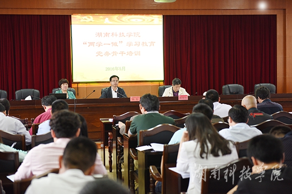 本网讯 5月23日下午,学校在行政办公楼八楼一会议室举行“两学一做”学习教育党务骨干培训班。校党委书记陈弘、校党委副书记唐艳明出席。