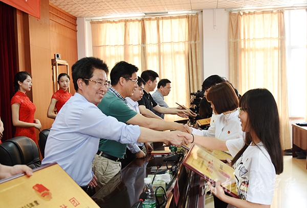 副校长程智开宣读表彰决定,校领导现场为受表彰的优秀集体及个人颁发荣誉证书。