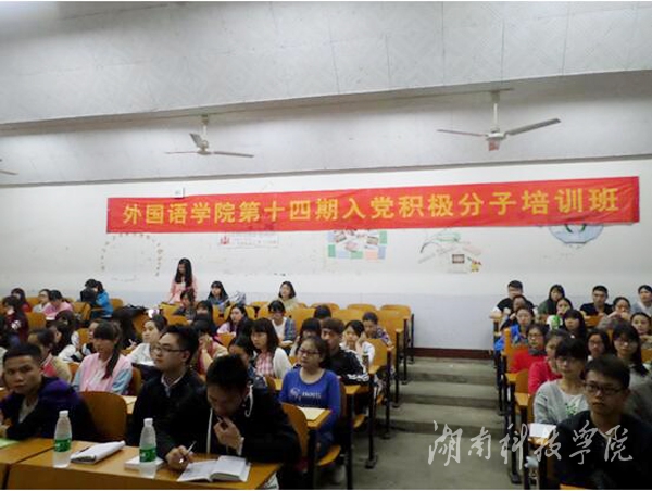 本网讯(通讯员 龙政钢)4月19日,外国语学院第十四期入党积极分子培训班于在二教东1-1教室举行,校党委委员、副校长宋宏福为学员上第一堂党课。