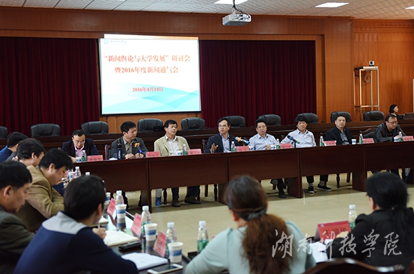 本网讯(记者 张云芳 摄影 何帅文)4月14日,学校在行政办公楼八楼一会议室举办“新闻舆论与大学发展”研讨会暨2016年新闻通气会。永州市委宣传部副部长蒋三立、省媒驻永单位及永州各大主流新闻媒体专家等齐聚一堂,围绕“新闻舆论与大学发展”主题,共话如何进一步做好学校新闻舆论工作。