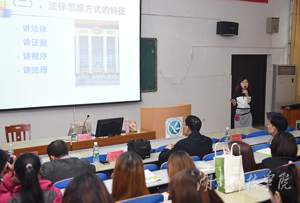 讲座以《法治伴成长 护航青春梦》为主题。管敏从犯罪事例导入话题,阐释了大学生加强法律修养、培养法律思维的重要性,阐述法律思维的含义。法律思维具有四个特征:一是讲法律。法律具有优先适用性和不可违抗性。二是讲证据。证据必须具有合法性、客观性和关联性。三是讲程序。从法律程序出发思考与处理问题。四是讲法理。为法律结论提供充分法律论证与法律理由,其中理由必须是公开的,且要具有法律依据和法律说服力。她还通过案例,以案释法,并结合青少年的性格、心理及身体特点,引导大家要牢固树立崇尚法律、遵守法律的意识,做一名遵纪守法的合格公民。