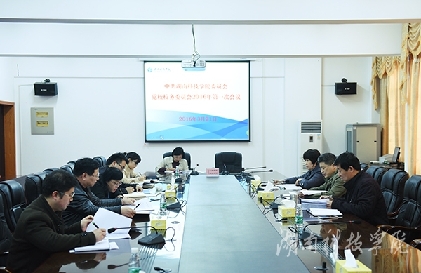 本网讯 3月21日下午,新一届党校校务委员会举行第一次会议,就2016年党校培训、制度建设等工作进行研究部署。校党委书记陈弘出席,校党委副书记、党校校长唐艳明主持,党校新一届校务委员会委员参加会议。