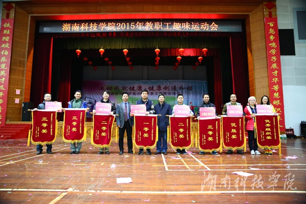 本网讯(通讯员 王志堂)12月13日下午,我校教职工趣味运动会在校体育馆举行。校党委副书记唐艳明、副校长程智开全程参与活动并为获奖队伍颁奖。体育学院等单位获奖。