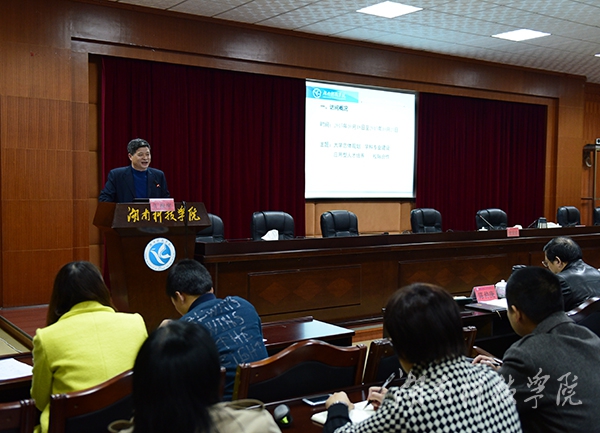 本网讯(记者 阳新秀 实习记者 邓肖华 贺紫蝶 摄影 何帅文)11月19日晚,学校召集全体中层干部在行政办公楼八楼一会议室召开转型发展学习汇报会。在家校领导陈弘、曾宝成、唐艳明、宋宏福、郑山明、李常健、吴小林、袁先友、陈仲庚等出席汇报会。会议由校长曾宝成主持。