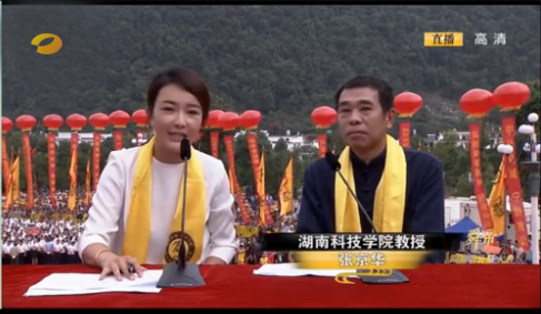 本网讯(记者 阳新秀)9月24日上午,张京华教授应邀赴宁远县九嶷山参加由湖南卫视现场直播的公祭舜帝大典,以专家身份对整个仪式进行现场解说。