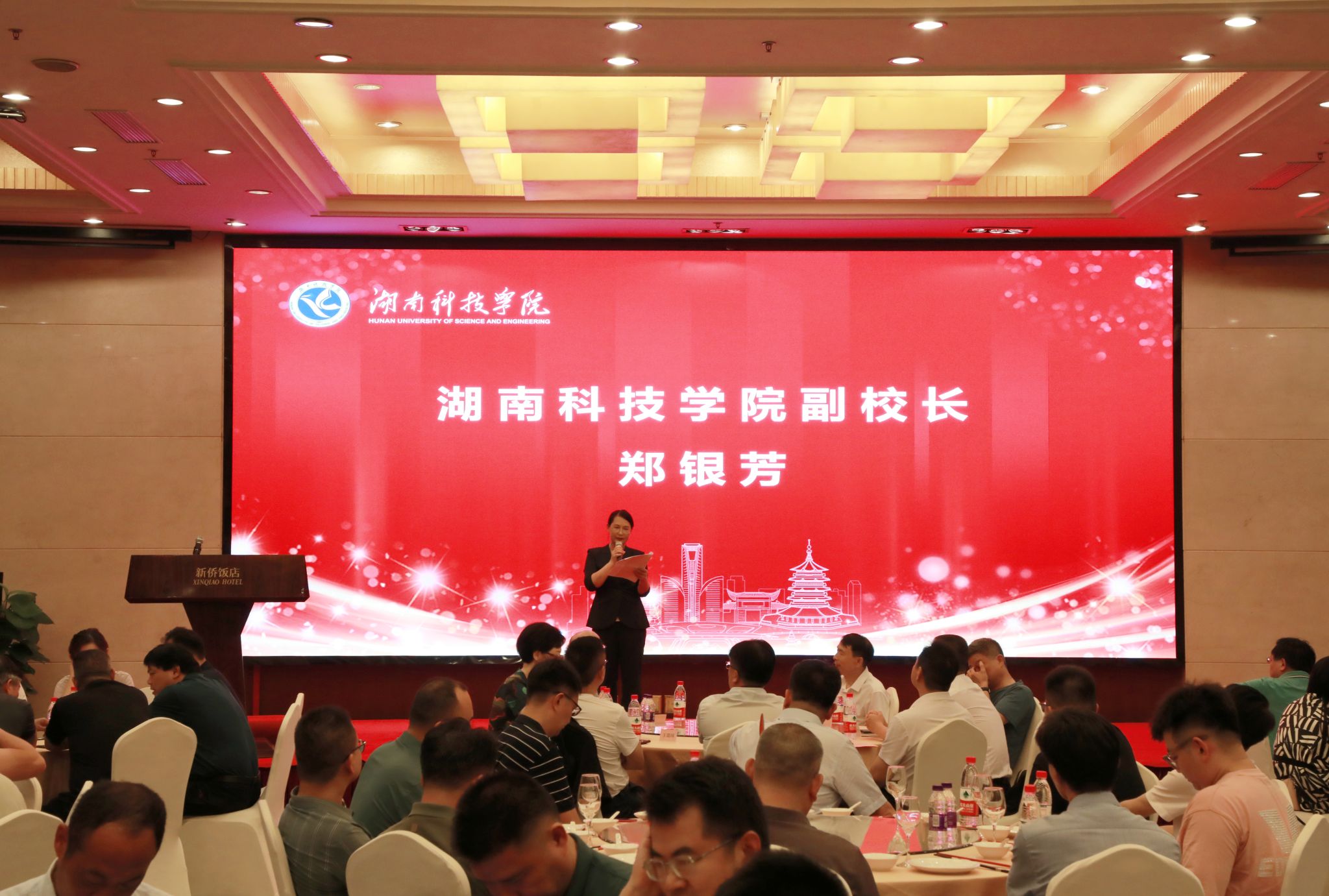 副校长郑银芳介绍了省委、省政府关于“校友回湘”工作的最新进展和安排,详细说明了“人才驿站”的功能与作用。