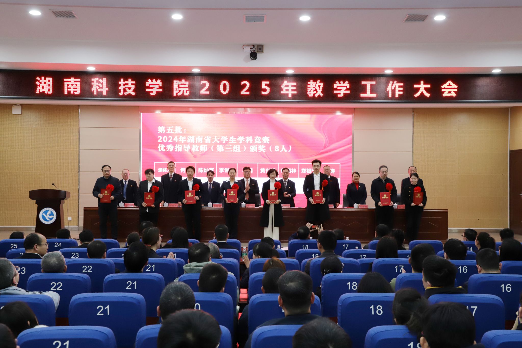 春风无限潇湘意,3月18日,在学校召开的教学工作大会上,一项项荣誉、一桩桩成绩,落笔璀璨,充分展现了我校近年来持续推进教育教学改革的生动实践。校党委书记李钢,党委副书记、校长黄创霞,以及其他校领导出席会议,全校副处级及以上干部,校教学督导,教务处、教学质量管理处全体工作人员,各教学学院教务办工作人员,全体专任教师参加会议,会议由李钢主持。