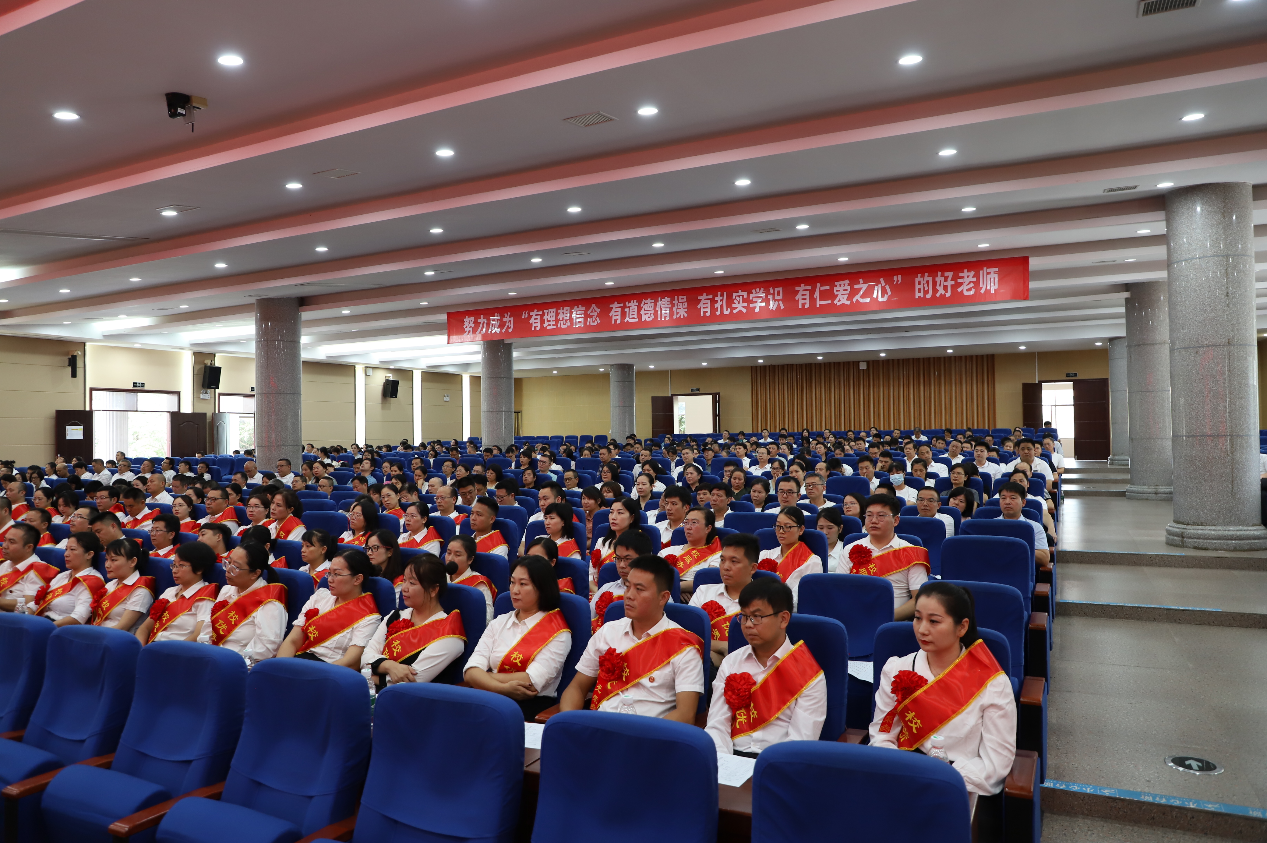大会在庄严的国歌声中拉开帷幕,2023年新进教师进行了入职宣誓,大家表示,要做有理想信念、有道德情操、有扎实知识、有仁爱之心的好老师。