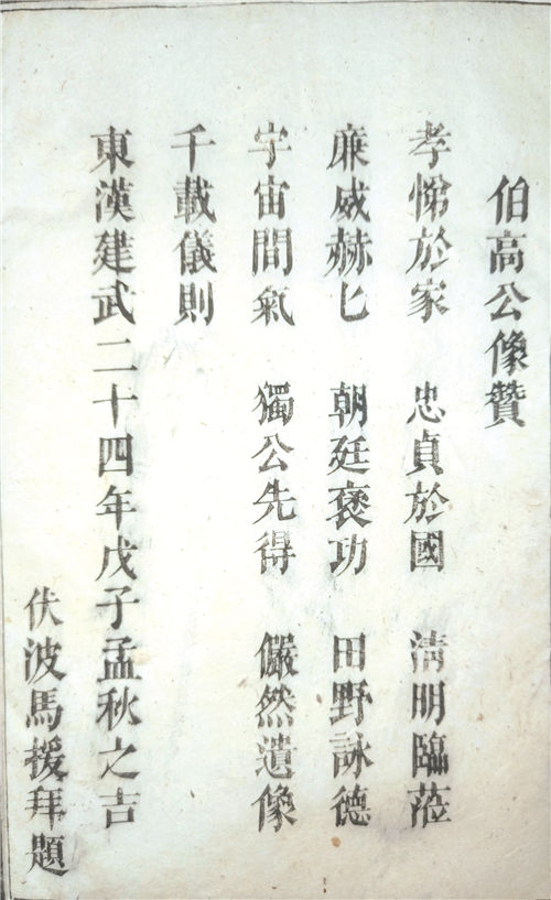清代零陵人谭光鼎《龙伯高墓》诗:“廉威片碣志封阡,抔土能留汉代贤。祠宇讵依司马永,姓名先藉伏波传。无边丘垅埋荒草,几处村墟冷墓煙。蘋藻独留遗裔在,善人食报岂徒然。”