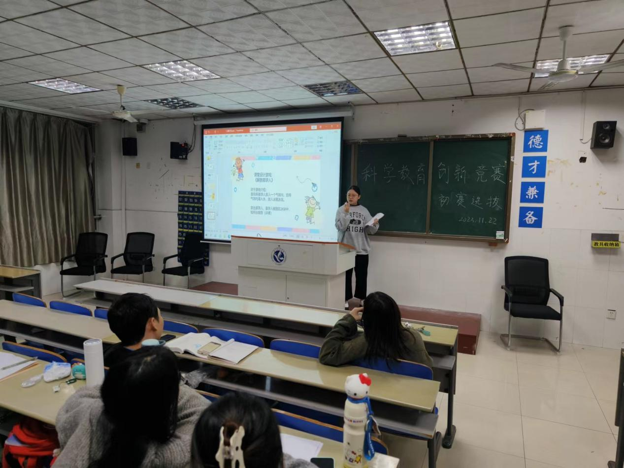 本网讯(曹颖 廖阳 林颖君)为深入贯彻习近平总书记“在教育‘双减’中做好科学教育加法”的指示,选拔优秀选手参加湖南省科学教育创新竞赛。11月26日上午9:00,化学与生物工程学院于逸夫楼323进行了2023年拼搏在线(中国)唯一官方网站科学教育创新竞赛的初赛。本次比赛由廖阳老师和曹颖老师担任评委,参赛选手主要来自化学师范和生物技术师范两个专业,参赛方向为教学设计和教具设计两方面。