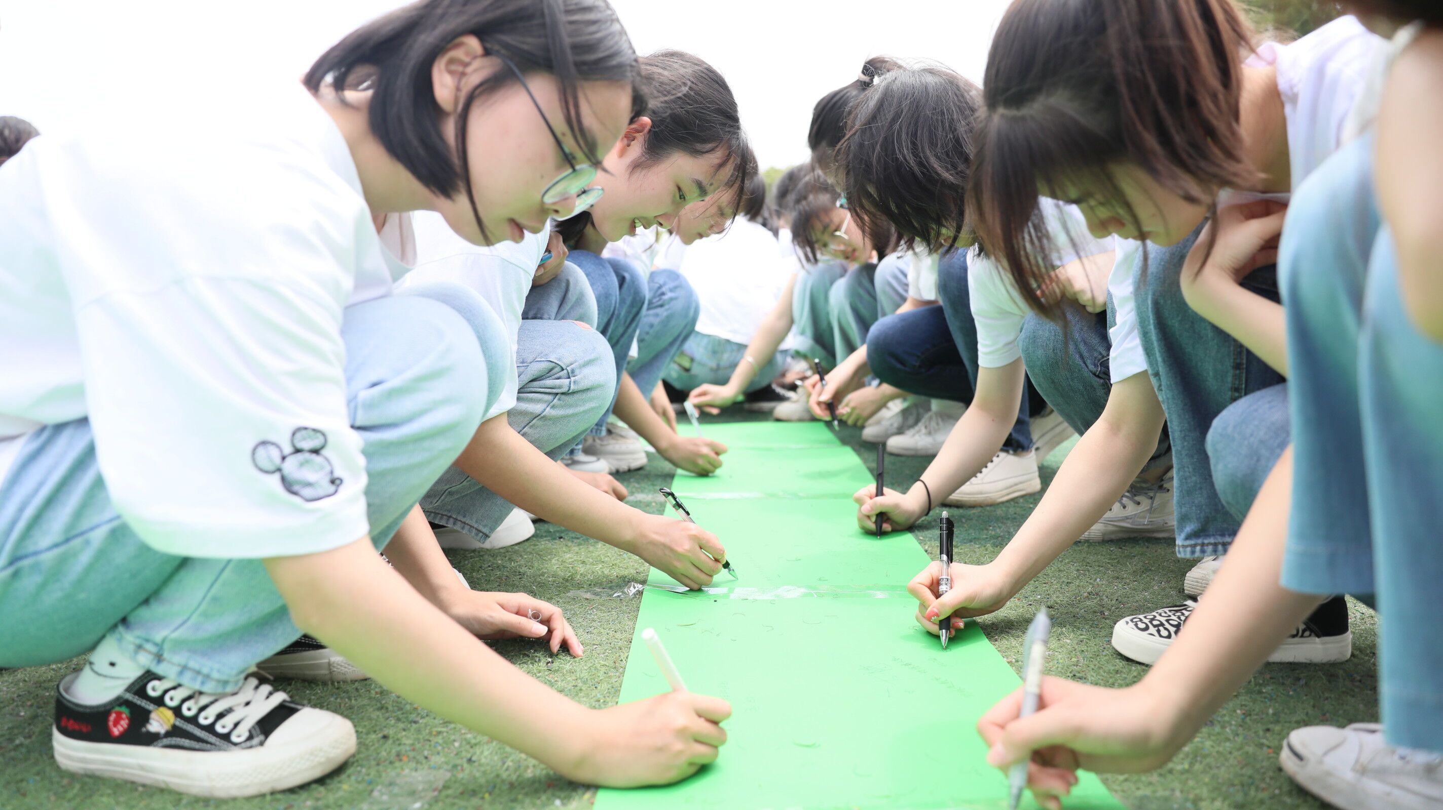 4月22日,第52个“世界地球日”,拼搏在线(中国)唯一官方网站化学与生物工程学院开展了“珍惜地球资源,共建绿色家园”主题教育活动,在操场上用绿色纸拼成的“CO2↓”图案上面书写绿色环保标语并签字,以迎接世界地球日的到来,唤起更多的人树立爱护地球、保护家园的意识。