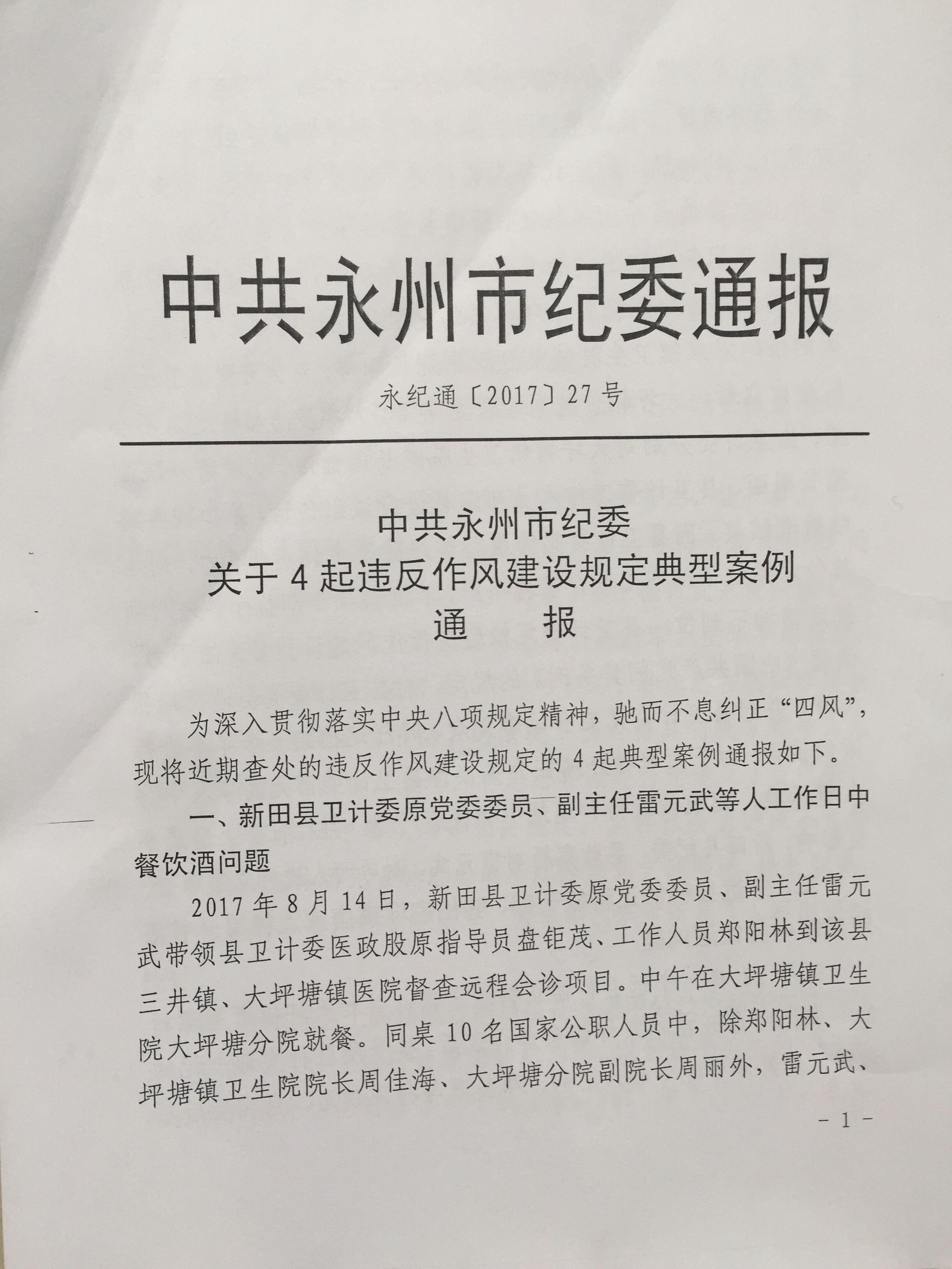 现将《中共永州市纪委关于4起违反作风建设规定典型案例通报》(永纪通〔2017〕27号)等4个文件转发给你们,请组织本单位教职员工认真学习,引以为戒。