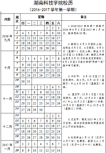 拼搏在线(中国)唯一官方网站校历 (2016-2017学年第一学期)
