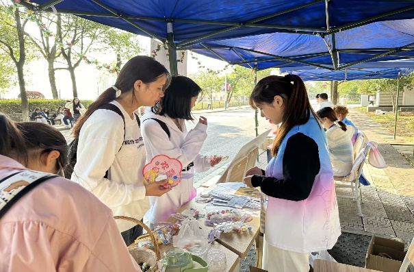 活动伊始,部门干事布置场地,讲解活动内容和游戏规则,吸引了大批同学前来围观和参与互动。本次活动共设计了3个小游戏,欢声笑语,“心口不一”小游戏,不同的手势配上不同的口型,把现场的欢乐值拉到了最高潮。“手串DIY”活动,同学们可以自行挑选适合的手链以及串珠,用来表达自己内心的想法和此刻的心情,获取到独属于自己的纪念小礼品。温暖至极“心灵相济”活动,参与同学可随机获得别人留下的暖心话语,也可写下自己的心里话,同辈互助,鼓舞他人,温暖自己。