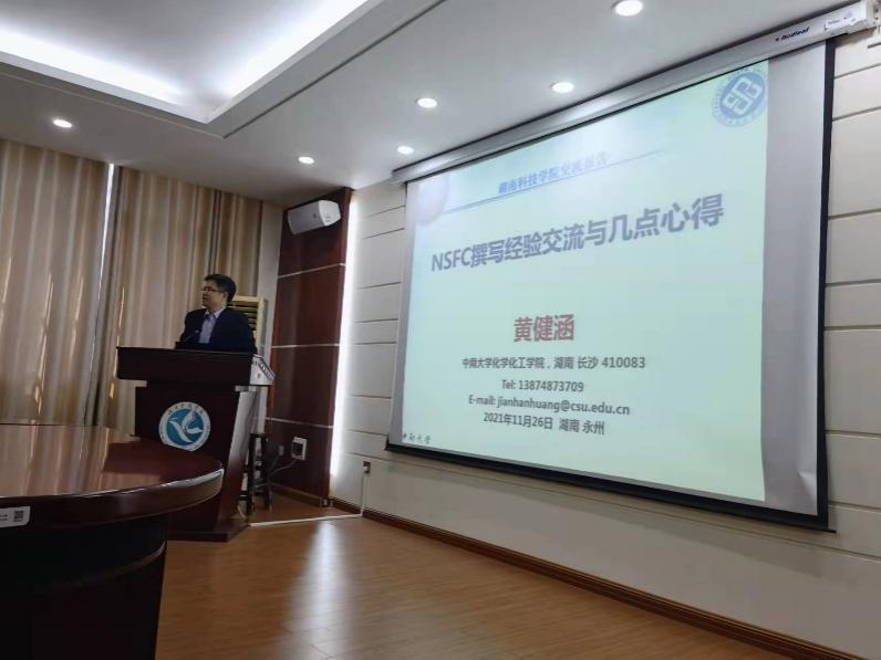 (本网讯 唐珊珊1126日上午,化学与生物工程学院举行的系列学术活动在逸夫楼320室拉开帷幕。本次活动邀请湖南大学化学化工学院郭栋才教授、中南大学化学化工学院刘有才教授和黄健涵教授分别做了题为教学科研互动、引领学科竞赛、培养创新创业人才”“化学类实验室安全管理国家自科基金及国家级、省部级项目申报的学术讲座。报告会由化生学院副院长刘芳教授主持,学院总支书记曾二青,副院长覃佐东教授、尹业师教授和部分师生参加。