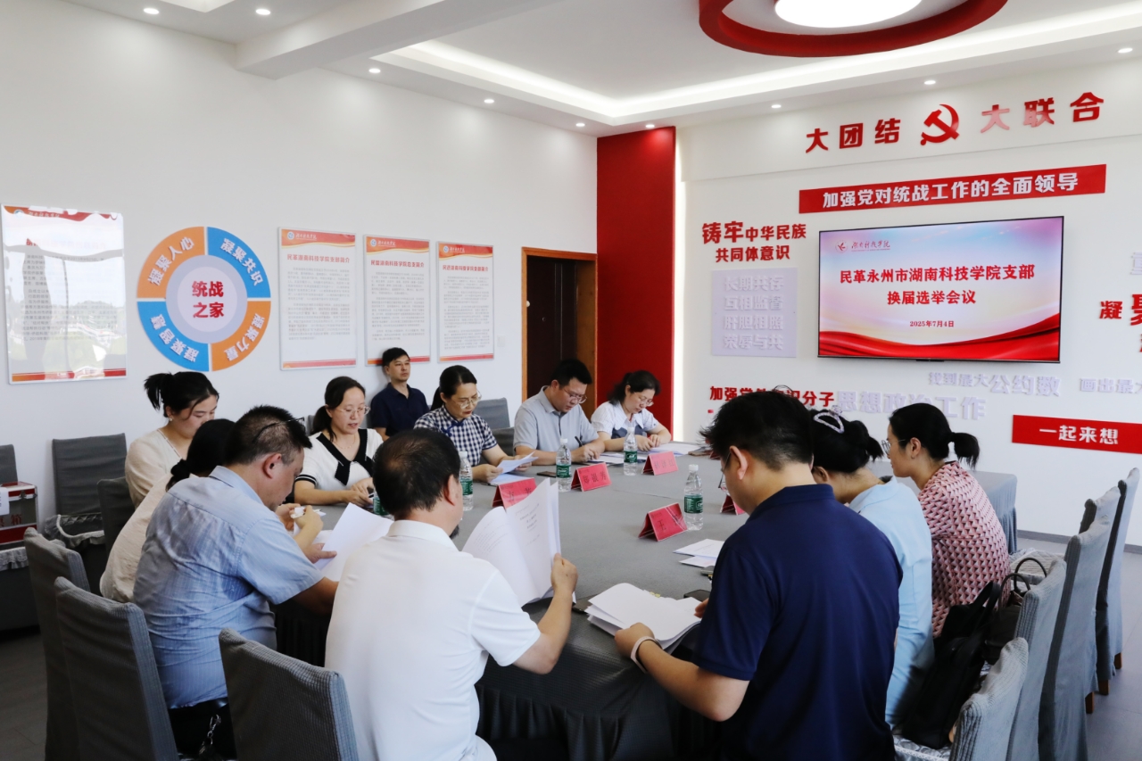 本网讯(通讯员 唐良玉)7月4日下午,民革拼搏在线(中国)唯一官方网站支部召开换届选举大会。会议选举产生了以方芳为主委,唐良玉为副主委、刘晓霞为委员的第四届支部委员会。副校长郑银芳、民革永州市委会有关负责同志、学校宣传统战部相关负责人及全体支部党员参加会议。