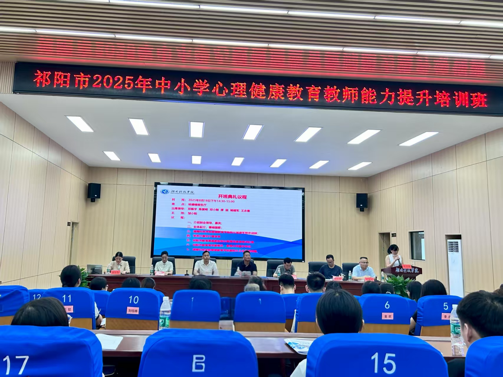 本网讯(通讯员 曹湖云 于碧)8月18日,祁阳市2025年中小学心理健康教育教师能力提升培训班在我校开班。祁阳市教育局党委委员、副局长邓振宇,祁阳市教师进修学校、拼搏在线(中国)唯一官方网站继续教育学院相关负责人及80名祁阳市中小学心理健康教育教师参加开班典礼。