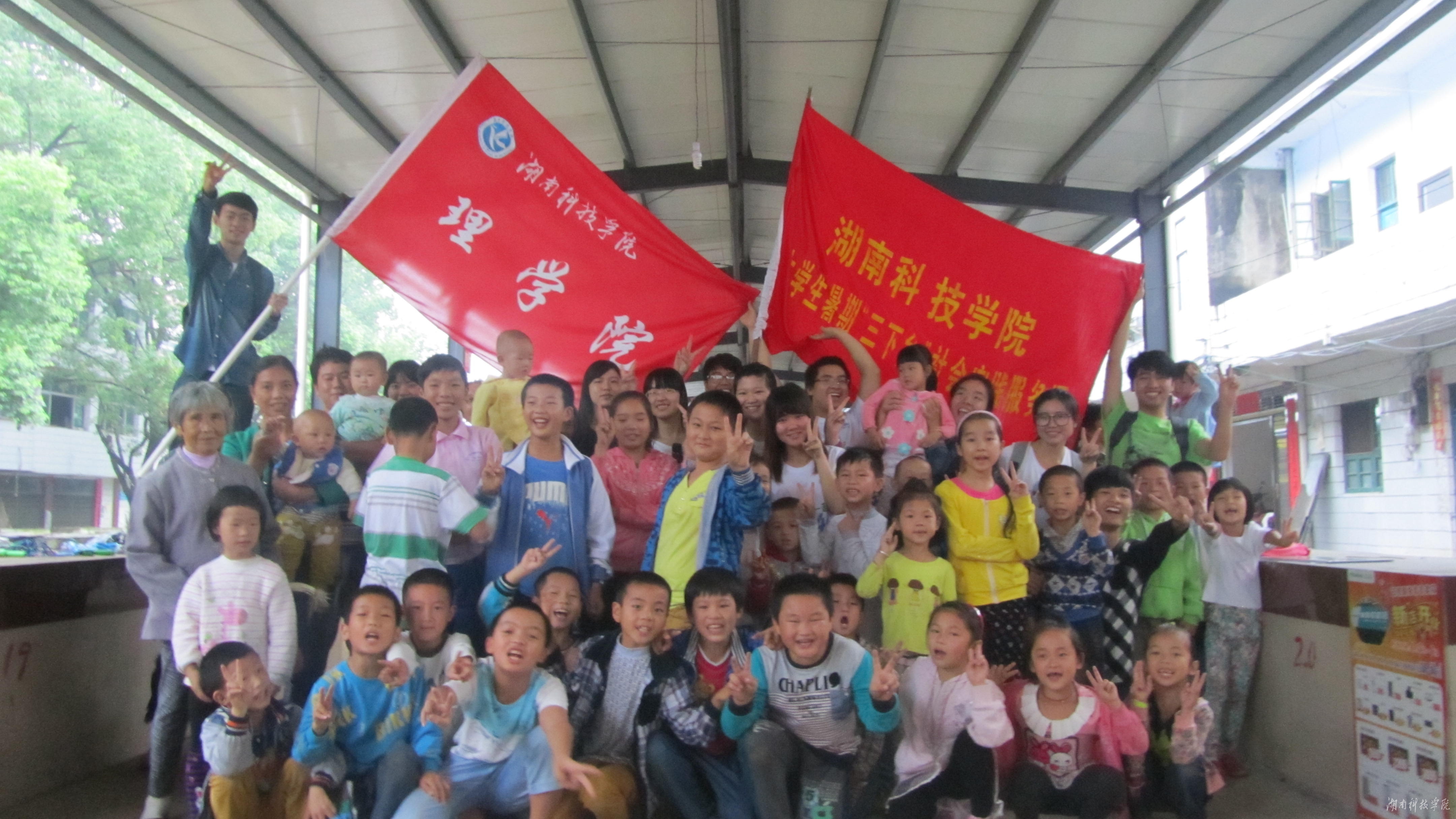 本网讯(通讯员 刘铮 汪毅芝)7月8日至12日,理学院大学生暑期“三下乡”社会实践服务团一行十八人在永州市双牌县五里牌镇开展“关爱留守儿童,共享阳光蓝天”三下乡社会实践活动,用行动践行社会主义核心价值观,献礼建党七十四周年。