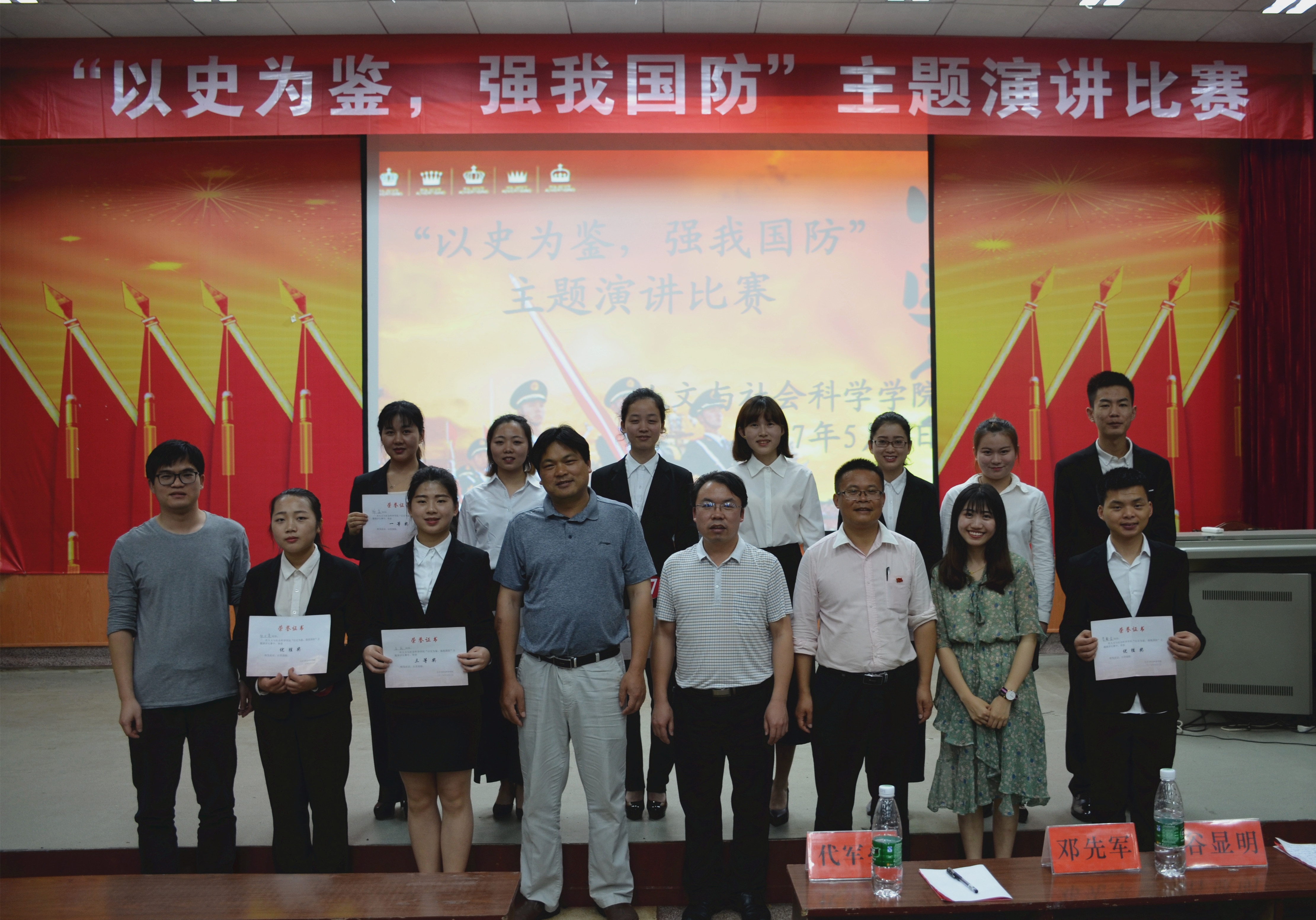 本网讯 53日,人文与社会科学学院举办的以史为鉴,强我国防主题演讲比赛决赛在明德楼一楼报告厅举行。该院党总支书记谷显明、党总支副书记兼副院长邓先军等出席比赛并担任评委。