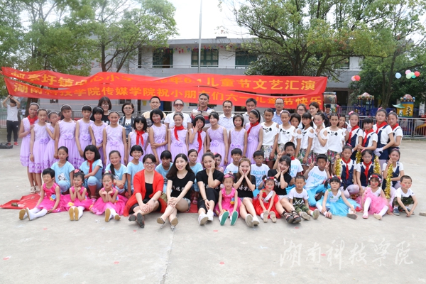 本网讯(通讯员 邓强 尹文怡)5月31日上午,传媒学院青年志愿服务团与邮亭圩镇中心小学联合举办六一文艺汇演活动,与小朋友们一起欢度“六一”儿童节。