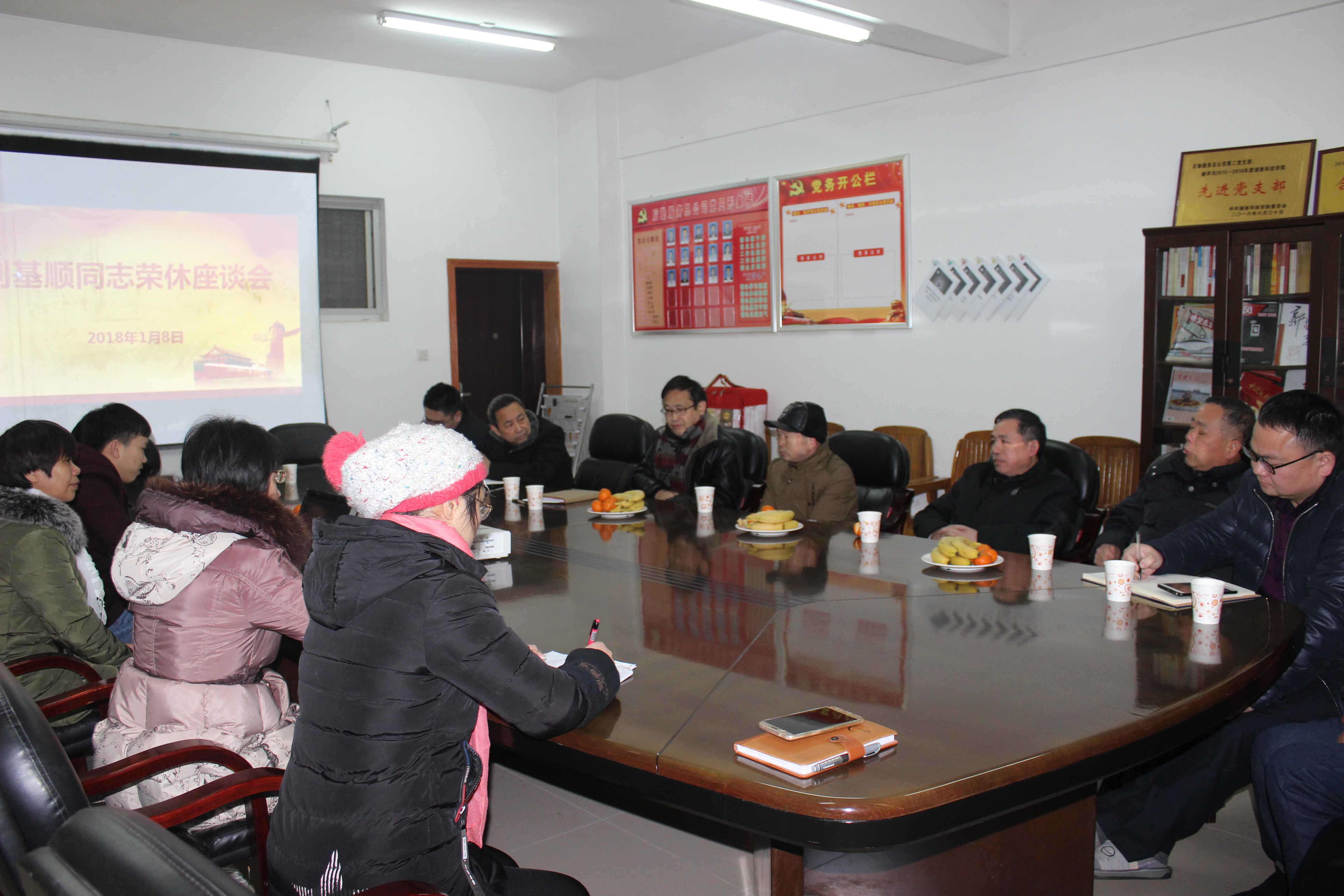 本网讯 1月8日,后勤服务总公司举行刘基顺同志退休座谈会。公司领导及水电中心全体人员参加座谈会,会议由后勤服务总公司副总经理李家年主持。