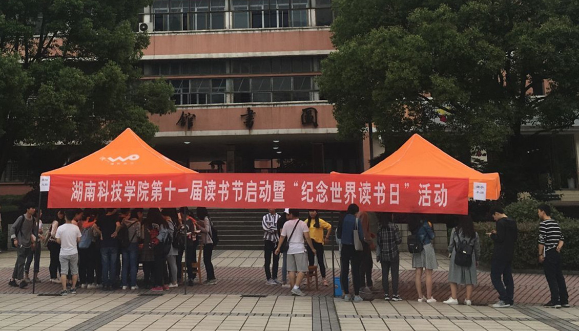 本网讯 4月24日,“第十一届读书节启动暨纪念世界读书日”活动在文化广场举行。本届图书节由图书馆、校学生会联合举办。