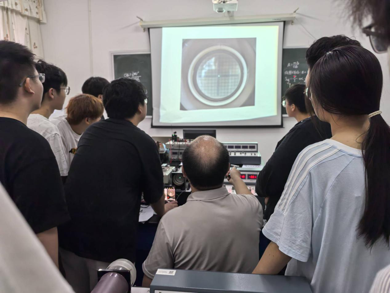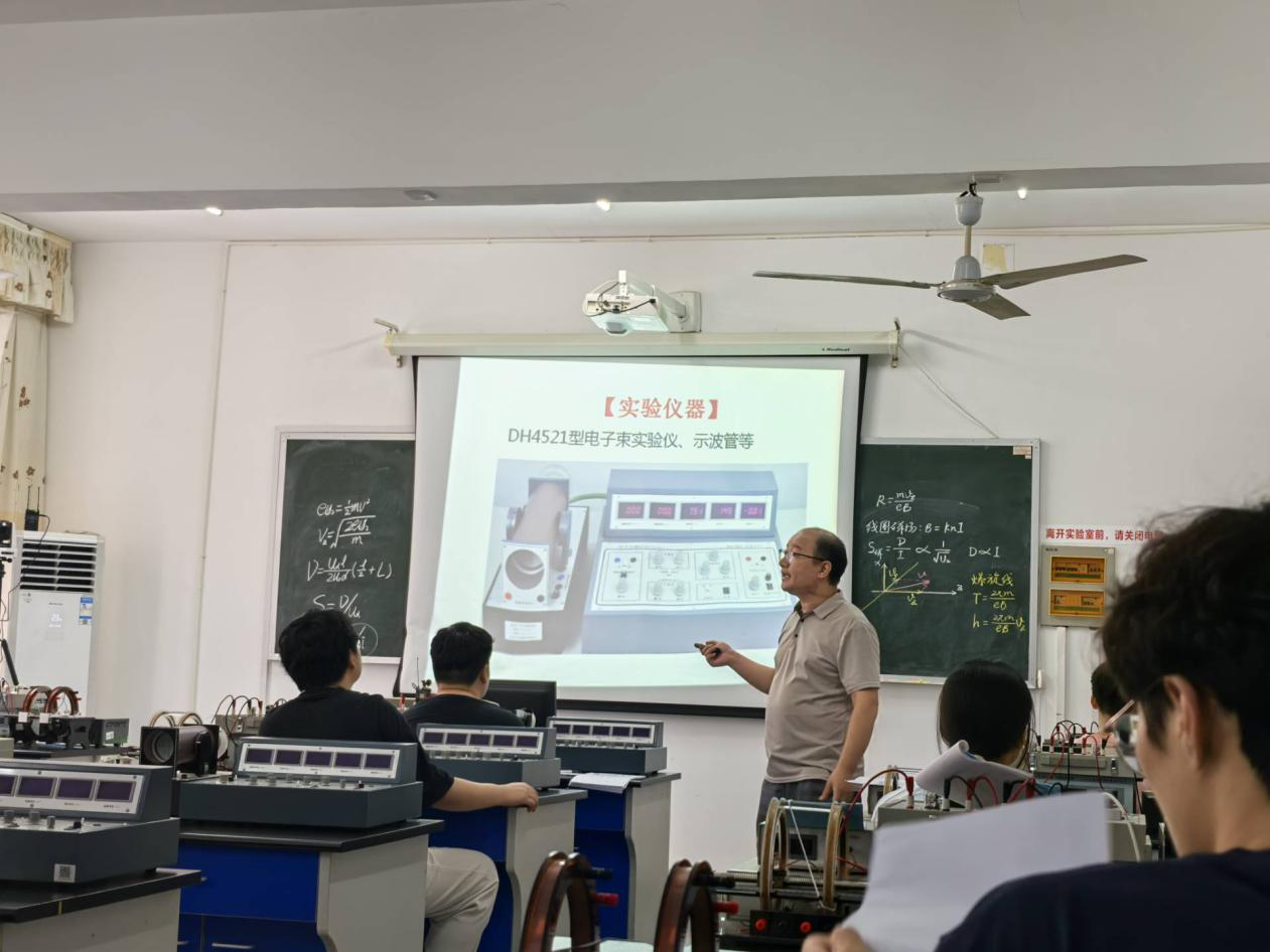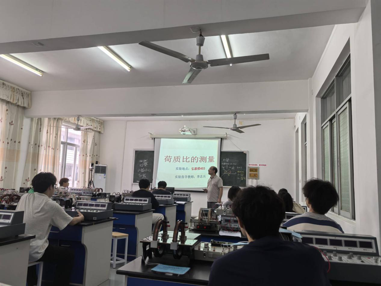 本次党日活动主题为《荷质比的测量》实验公开课,李志兵老师化身科学引路人,凭借深厚的专业素养,将严谨的理论知识与生动的操作演示有机融合,以沉浸式教学模式带领学生探索科学奥秘。课程围绕荷质比测量展开,涵盖实验目的、仪器、原理、步骤、数据处理等核心内容。课堂上,学生积极参与光点调零、电流调节等操作,在数据记录与处理环节学习运用作图法和计算方法分析结果。课程设置的思考题进一步激发学生探究意识,促使其深入思考实验现象与原理应用。