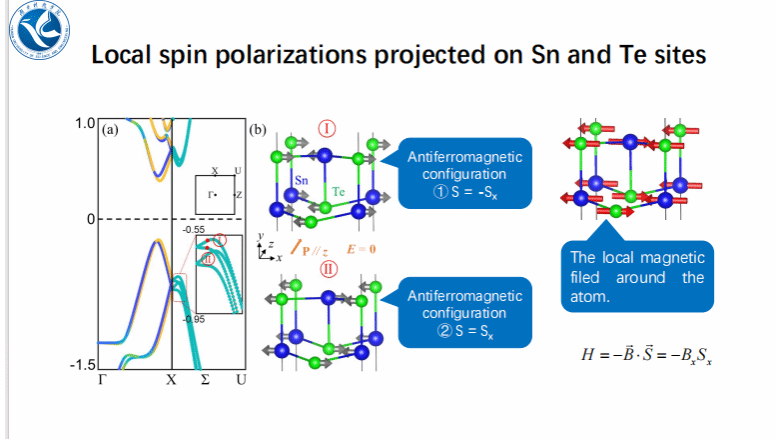 讲座伊始,刘凯博士系统介绍“能带分裂伴随自旋极化消失(BSVSP)”新现象。以体GaAs和1-UC SnTe薄膜为例,结合DFT计算与k.p方法哈密顿量推导,验证了BSVSP行为的存在。