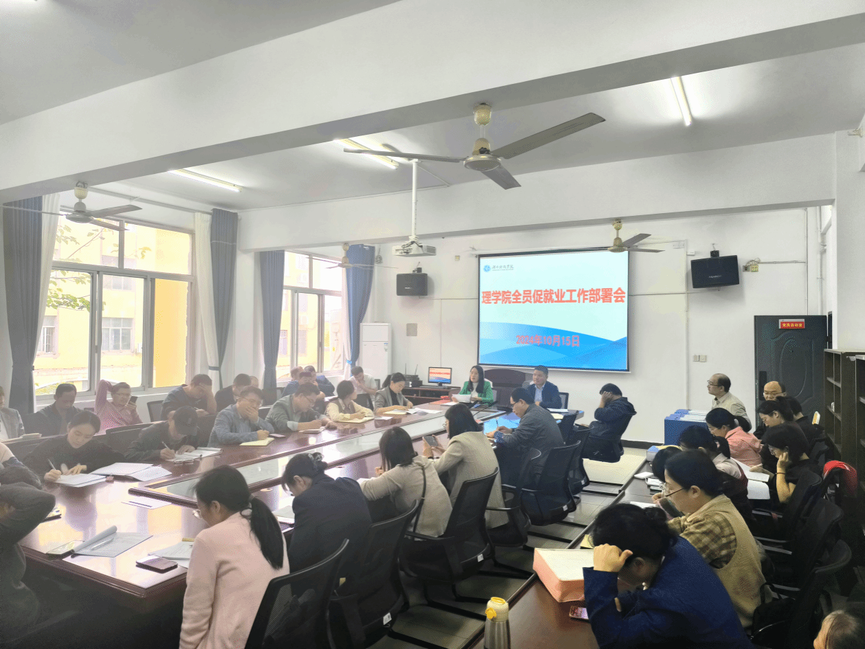 本网讯(通讯员:石庆湘 龙枚樱)2024年10月15日下午,理学院于明理楼313召开全员促就业部署会议,理学院党总支书记刘华主持会议,理学院院长李小武、学院领导班子、2021级毕业生班辅导员、班主任、理学院全体教师及部分学生出席。