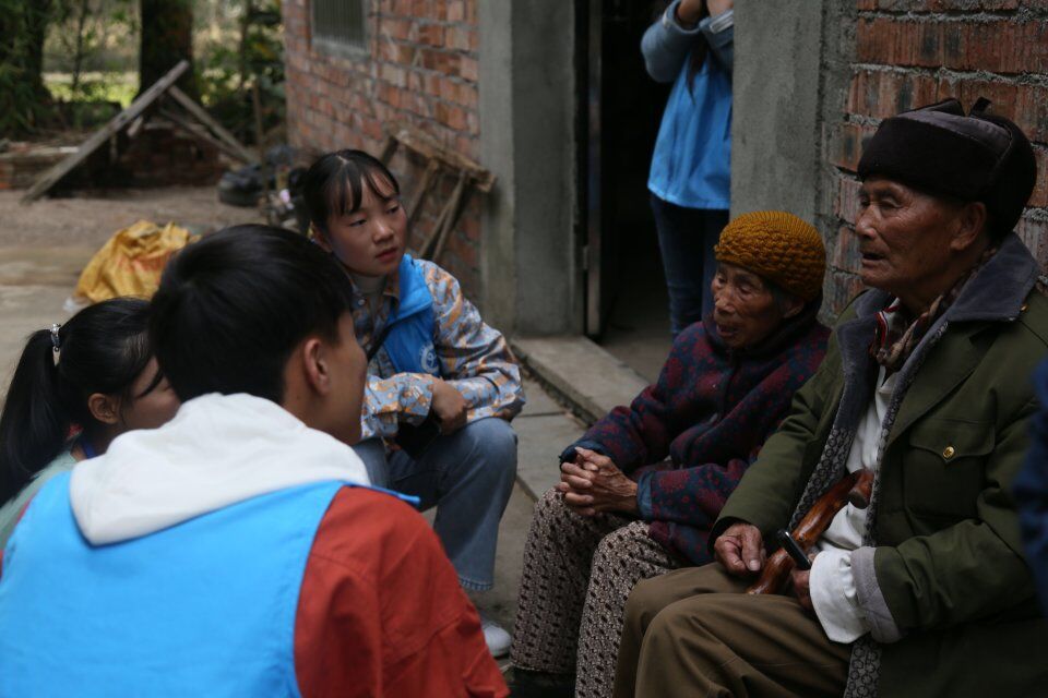 当志愿团队提着慰问品抵达孙吉柏爷爷住所时,印入眼帘的是简陋昏暗的一层红砖房,墙上贴着由湖南省人民政府颁发的“光荣之家”挂牌,挂牌下横着两条由砖头和木板搭建的长板凳。随后,志愿者们分为两组,一组搞卫生,一组陪伴孙爷爷聊天。孙吉柏爷爷向志愿者们讲述了浴血奋战、保家卫国的从军经历,14岁当兵,曾隶属空军25站,从抗日到抗美援朝,参与的大大小小的战役,惨烈非常,孙爷爷频频摇头以示不堪回首,到动情处,还为大家唱起了当时的战歌,歌声激昂嘹亮不减当年。如今,孙吉柏爷爷如今已是94岁高龄,但是仍心系祖国发展,也感恩国家、政府、社会对老兵的关怀。最后,全体志愿者为孙吉柏爷爷歌唱了《我是一个兵》、《好男儿就是要当兵》。