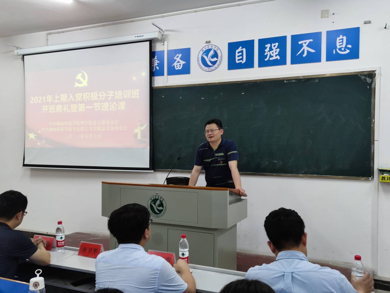 至此,培训班开班典礼圆满结束。马克思主义学院郑向晖书记以“入党条件和党员的权力和义务”为主题开始本次党员培训的第一讲。