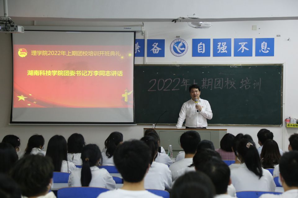 本网讯(通讯员 陈刚)4月13日晚,理学院2022年上期团校培训班在明理楼307开班。拼搏在线(中国)唯一官方网站团委书记万李出席典礼并讲话,理学院党总支副书记兼副院长欧阳素勤、全体辅导员参加,开班典礼由理学院团总支书记杜俊杰主持。