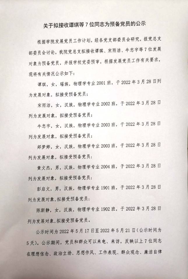 关于拟将刘紫璇等8位同志转为中共正式党员的公示