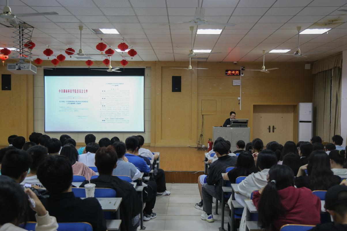本网讯(通讯员刘浩)为深化同学们对党的认识,厚植爱党爱国情怀,熟悉入党流程,理学院于10月11日晚在致远楼701举行“大学生入党的基本程序与规范”讲座。学院团总支组织部、团校部学生干部,2022级团支部书记,2023级全体新生参加,讲座由理学院党总支组织委员杜俊杰主讲。