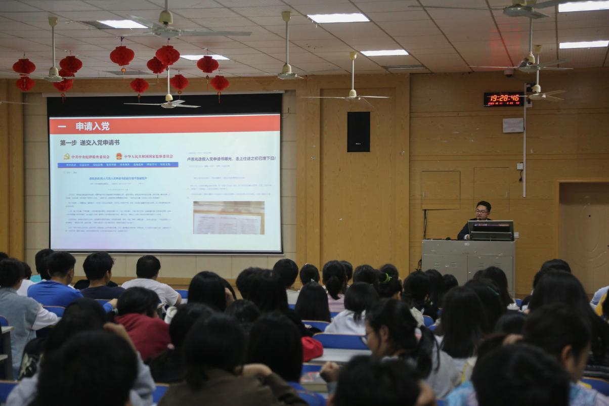 杜俊杰按照发展党员程序,从“申请入党”讲到“预备党员的接收、考察、转正”。在讲解过程中融入身边实例,展示各类相关规定和文件,也对同学们提出了一些具体要求。