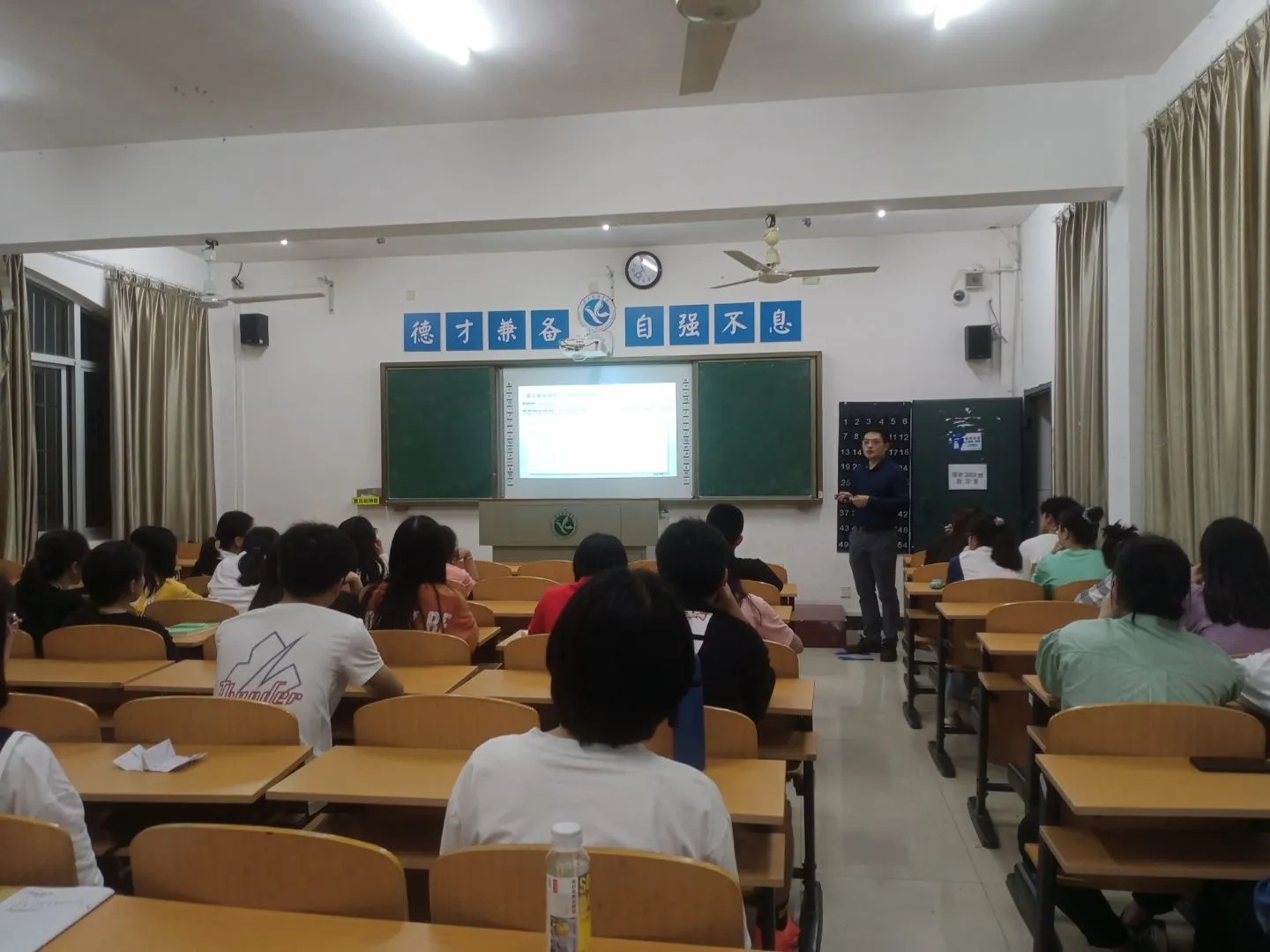 本网讯(通讯员 肖雪)为丰富学生的课外知识储备,开拓学生眼界,理学院于5月5日晚,在明理楼开展了“锆基金属玻璃在医用材料领域的一些应用研究”的主题讲座,主讲人为材料学博士贺强。