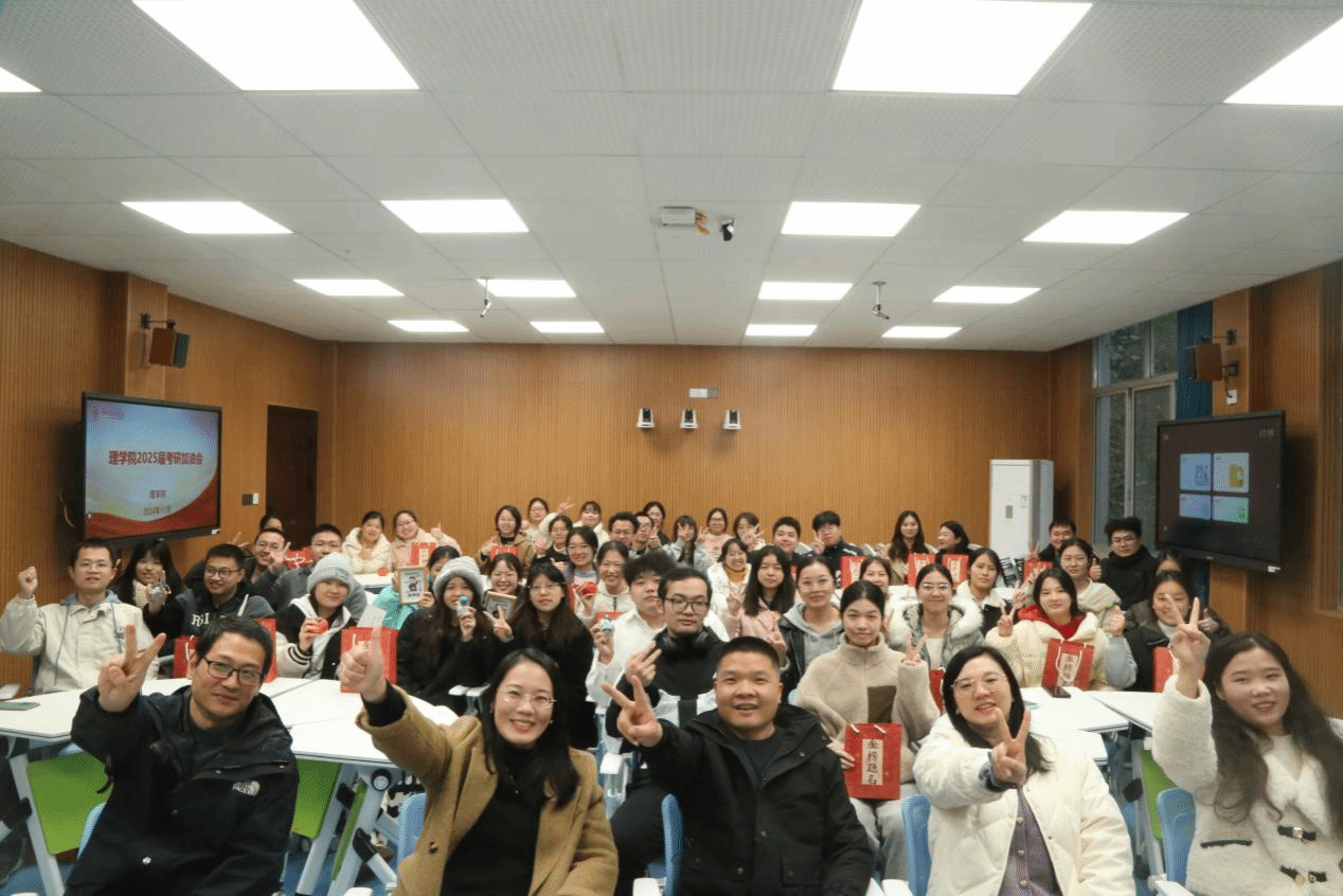 本网讯(通讯员:戴曦谋 龙枚樱)为了点燃理学院学子们考研的斗志,预祝同学们考研取得理想成绩,11月26日下午,理学院在明理楼407举办了“2025届考研加油会”,理学院院长李小武、理学院党总支书记刘华、学院领导班子出席,2021级辅导员龙枚樱主持。
