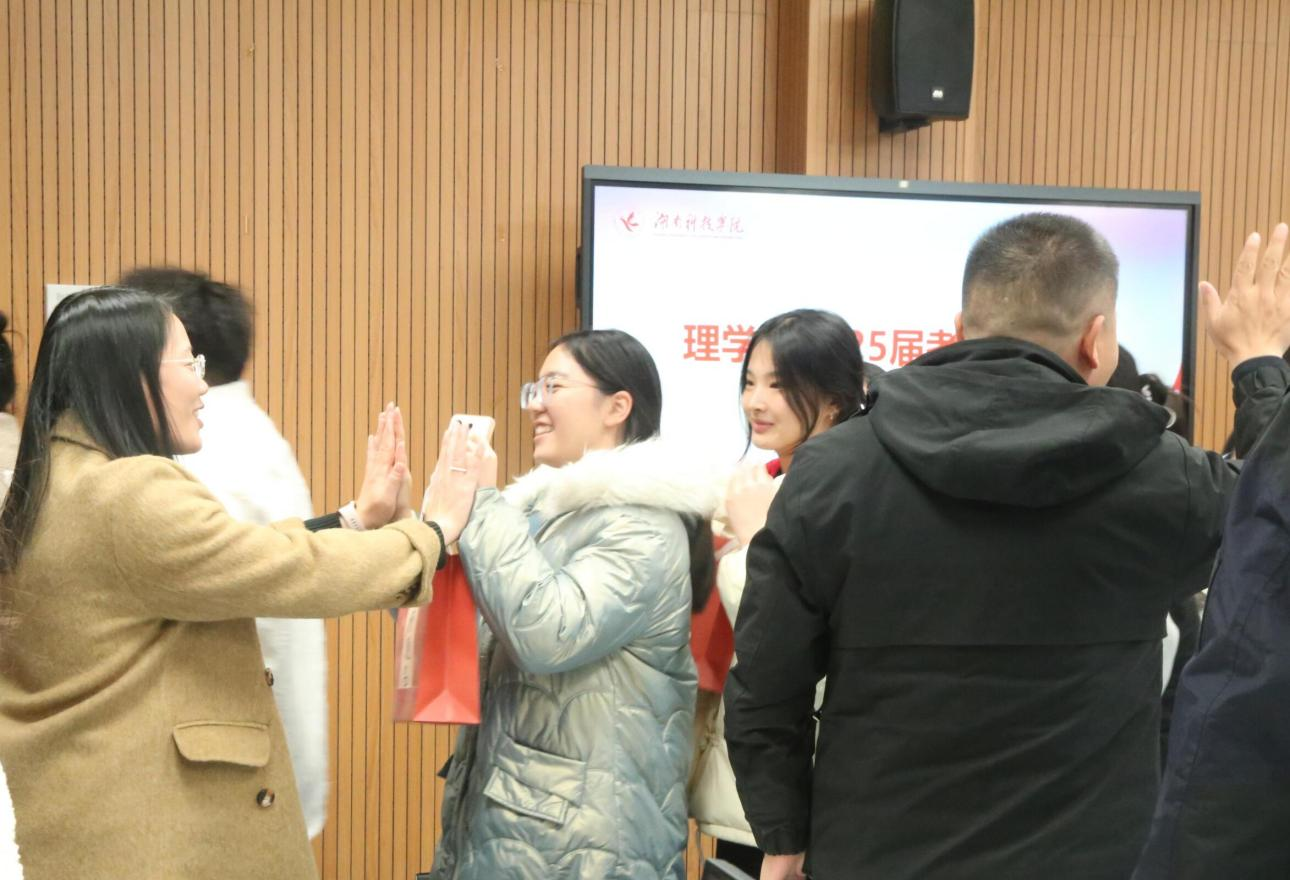 加油会在由学弟学妹们制作的考研加油视频播放中拉开序幕,紧接着,理学院院长李小武致辞,他分享了自身考博经历,以此鼓舞同学们的士气。针对目前就业环境,李小武院士强调了考研对于个人学术发展和职业规划的重要性。他鼓励学生们要明确目标,坚持不懈。接着,党总支书记刘华发表了讲话,她鼓励同学们要坚定信念,克服困难。她还提醒大家合理安排复习计划,保持良好的身心状态。由学院领导老师将考研加油礼物发放给每一位考研学子,与他们击掌为誓,祝福他们一站成“硕”,成功上岸。