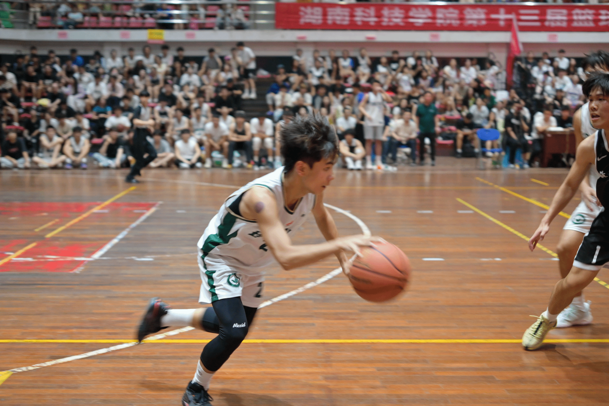 比赛开始,身着白色队服的理学院篮球队在第一节利用高位对抗的优势,借助队友的掩护与挡拆次次突入内线,一次次外线精准投射,领先对面。接下来的第二、三节经济管理学院篮球队抓住理学院防线漏洞逐渐将比分拉回,并成功反超。赛场气氛焦灼,理学院篮球队员调整防守战略,在最后几分钟时间将比分追平。紧接着理学院篮球队控球后卫假动作晃过防守,抛投绝杀,反超比分。最后20秒时,理学院篮球队员罚球再次得分,最终以5047的成绩取得胜利,全场沸腾!
