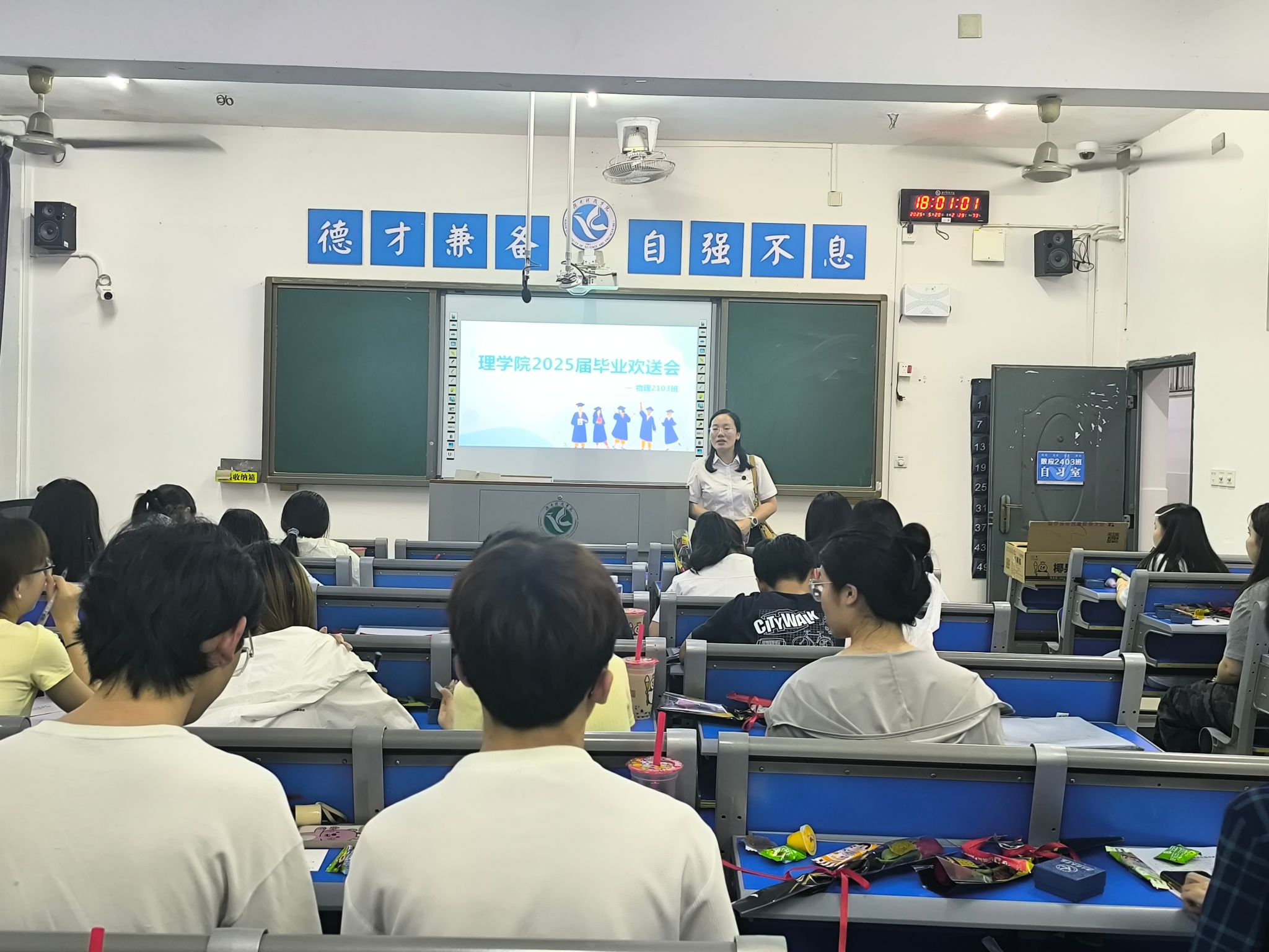 欢送会特别融入“六个一”教育实践活动,通过“最后一次主题班会”“撰写一封感谢信”等仪式,引导学生完成从“理院学子”到“理院校友”的身份转变。在快门声中,毕业生们将笑脸定格成永恒,带着学院的殷殷嘱托和专属记忆,踏上人生新征程。