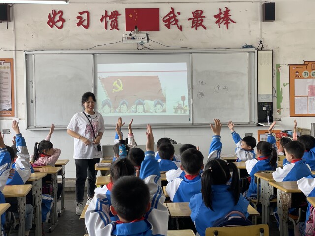 拼搏在线(中国)唯一官方网站马克思主义学院通过与中山路小学合作,开展百年追梦之“不忘初心讲党史,红色故事铭党恩”主题实践活动,做到“一周一故事,一人一讲台”,鼓励大学生党员上台讲党课,重温中国共产党近百年的光辉历程。培养学生从小认识党旗,了解党史,铭感党恩,真正做到“润物细无声,少年心向党。”
