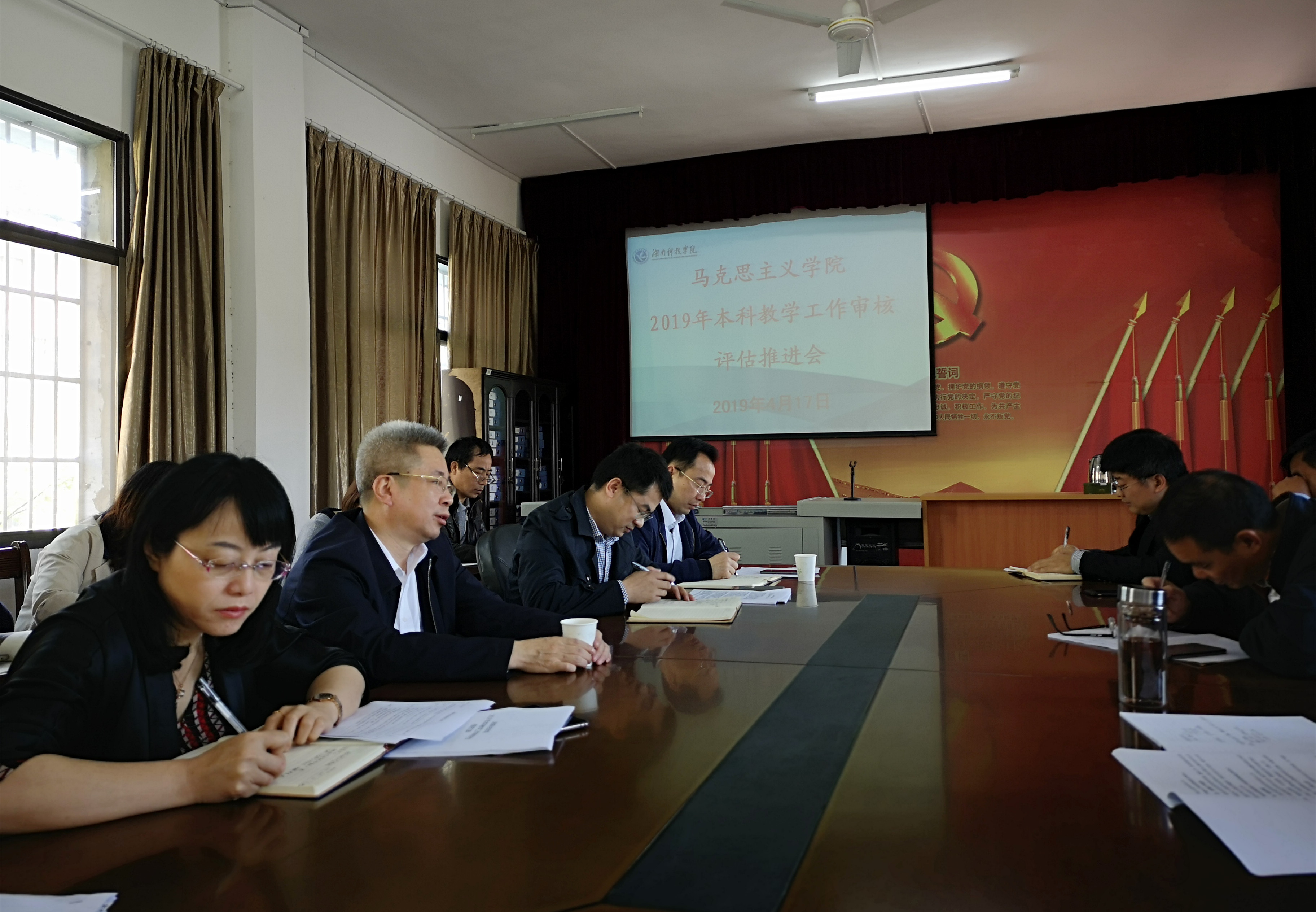 本网讯(通讯员 李艳)4月17日上午,马克思主义学院召开本科教学工作审核评估推进会,校党委书记、校长曾宝成出席并讲话,该院全体教师与会。会议由该院党总支书记郑向晖主持。