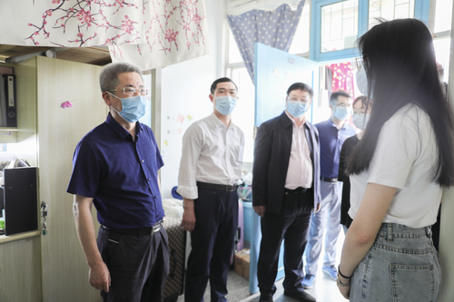 本网讯5月22日,校党委书记曾宝成、副校长吴小林一行来到我院学生宿舍看望返校毕业生,详细了解学生服务保障情况,全力确保各项工作平稳有序开展。学工部部长唐华山、我院院长廖雅琴、党总支书记郑向晖、党总支副书记高丹等陪同走访。